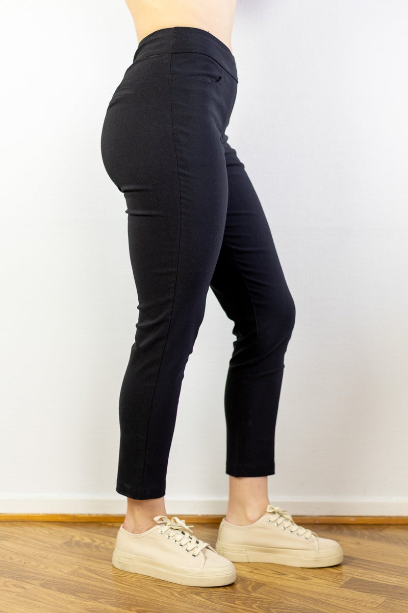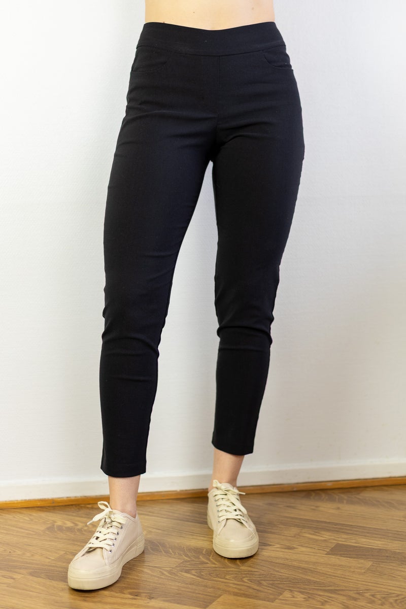 Materiaali joustaa miellyttävästi liikkeessä ja yhdessä joustavan vyötärön kanssa tekee housuista poikkeuksellisen mukavat koko päivän käyttöön – niin töihin, kaupungille kuin rennompaan juhlapukeutumiseen.